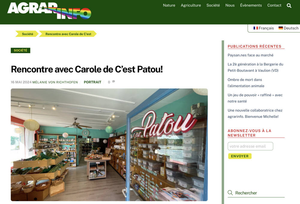 Avec mon mari, on a toujours aimé bien manger. Avant le Covid, on allait s’approvisionner en France au Biocoop des Rousses. Quand les frontières ont fermé, on a bien été obligé de trouver une alternative, on a alors rencontré Patricia alias Patou dans son garage à la Cézille. J’ai commencé à y travailler quelques heures par semaine. Son garage devenant trop petit, elle cherchait, puis on a cherché ensemble, un espace pour ouvrir une épicerie et on a eu le coup de cœur en découvrant ce lieu plein de charme à Trélex. Patou a ensuite décidé de se tourner vers d’autres horizons, et nous avons repris l’affaire, et le nom.