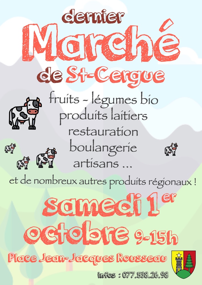 Demain samedi 1er orctobre, dernier jour du marché de St-Cergue de l’année! Retrouvez-nous comme d’habitude sur notre stand de fruits & légumes BIO de la région! Un petit chaï tout chaud vous attendra 🫖