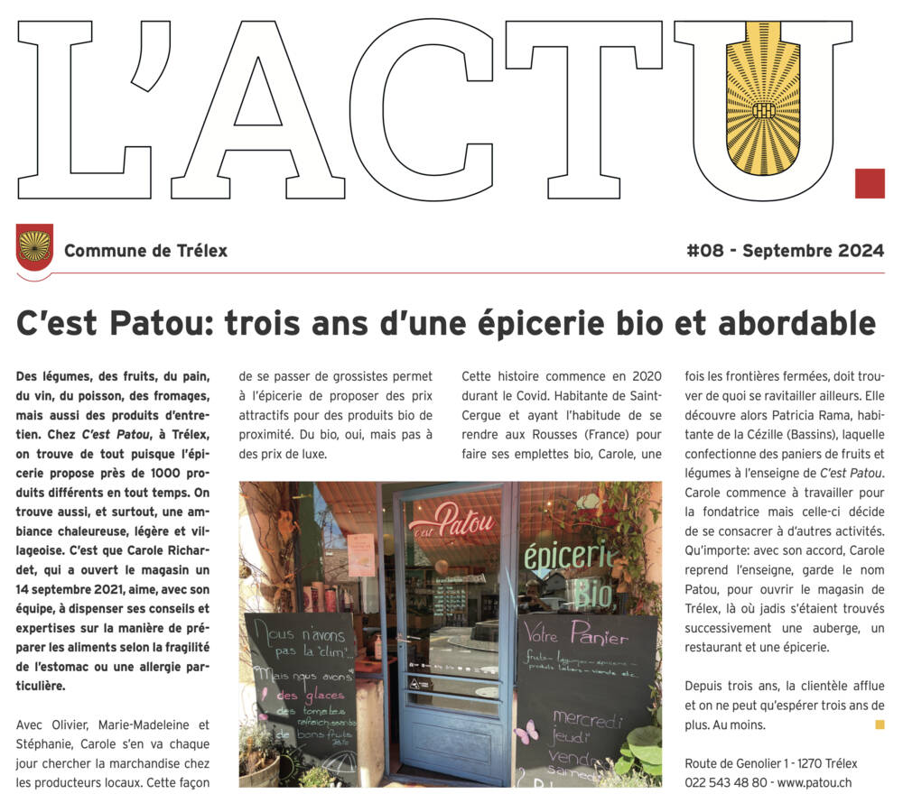 Merci à la commune de Trélex d'avoir consacré sa Une à notre épicerie!