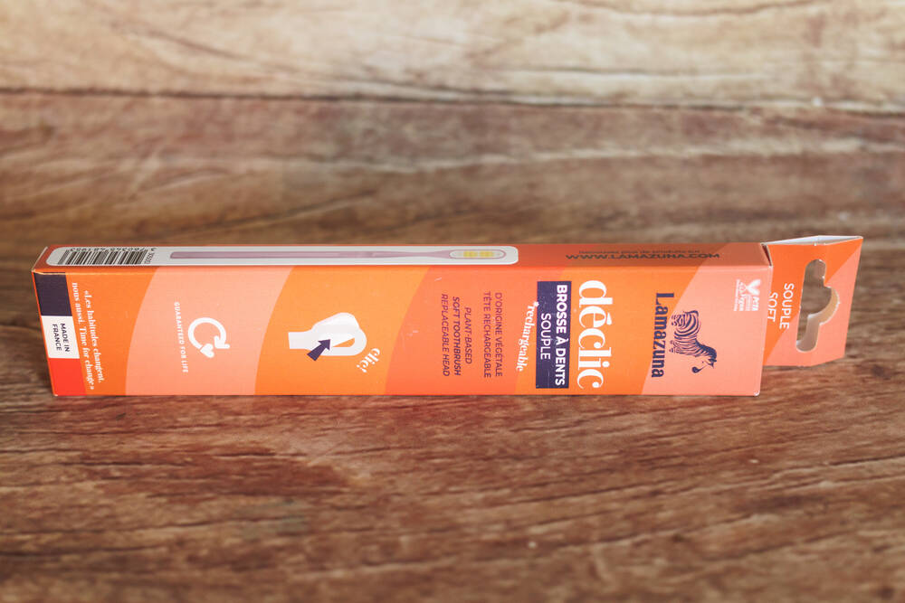 La brosse à dents Déclic souple est ergonomique et nettoie correctement les dents ! Elle est agréable en bouche et ne bougera pas dans le temps. Vous ne la verrez pas noircir ou s'abîmer sur le bord de votre lavabo. Bref, vous ne verrez pas la différence avec votre brosse à dents classique. Mais, à une tête près, tout change pour la planète !!