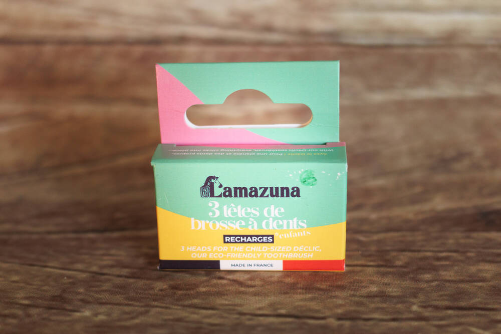 Adaptées à la brosse à dents rechargeable Déclic Lamazuna, ces 3 têtes de brosse à dents aux poils extra-souples sont pensées pour les dents et les gencives sensibles.