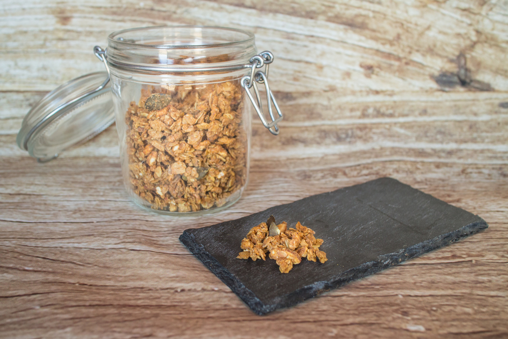 L’amidonnier, le petit épeautre et le seigle sauvage se conjuguent avec de l'avoine fi ne et affi nés avec des protéines de graines de courges. Grâce à l'ajout de farine de graines de courge, ce müesli se révèle une véritable source de protéines. Les céréales ont été soigneusement cultivées dans les champs locaux, transformées en fl ocons et raffi nées en muesli croquant. Le muesli croquant de haute qualité est sublimé dans du yogourt nature, du fromage blanc ou avec du lait. Si vous l'aimez encore plus sucré, dégustez-le avec la boisson à l'avoine Biofarm.