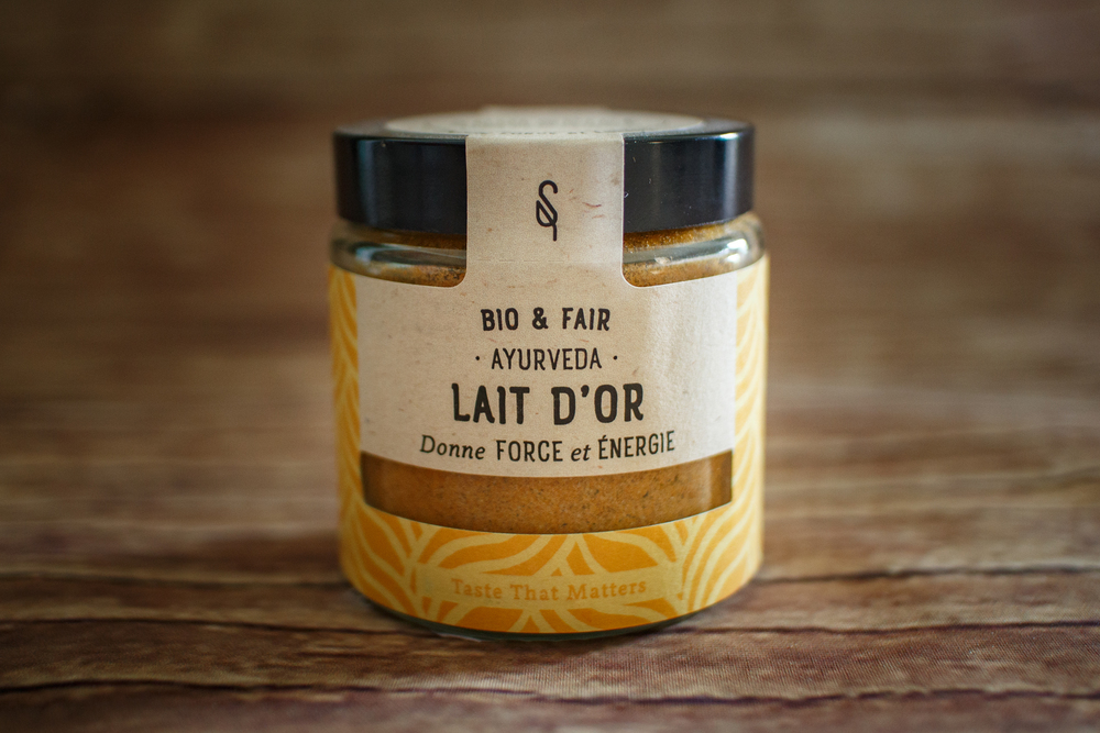 Nous avons développé notre mélange de curcuma latte en collaboration avec nos spécialistes en Ayurveda en Inde. Il est composé de curcuma, de gingembre, de poivre, de cannelle et de cardamome. La cannelle et la cardamome lui procurent une saveur florale et harmonieuse, qui en fait une alternative savoureuse au thé ou au chocolat chaud. Le goût se rapproche du thé chai.