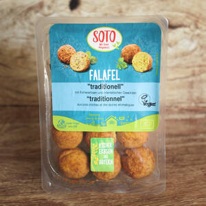Nos falafels biologiques sont faits en suivant une recette classique et contiennent 70 % de pois chiches Kabuli biologiques, de l'oignon, de l'ail, du persil haché et un mélange d'épices traditionnelles. Nous les trouvons irrésistibles servis chauds dans du pain pita avec une salade hachée et garnis d'un filet de tahini, seuls, comme meze ou comme collation rapide.